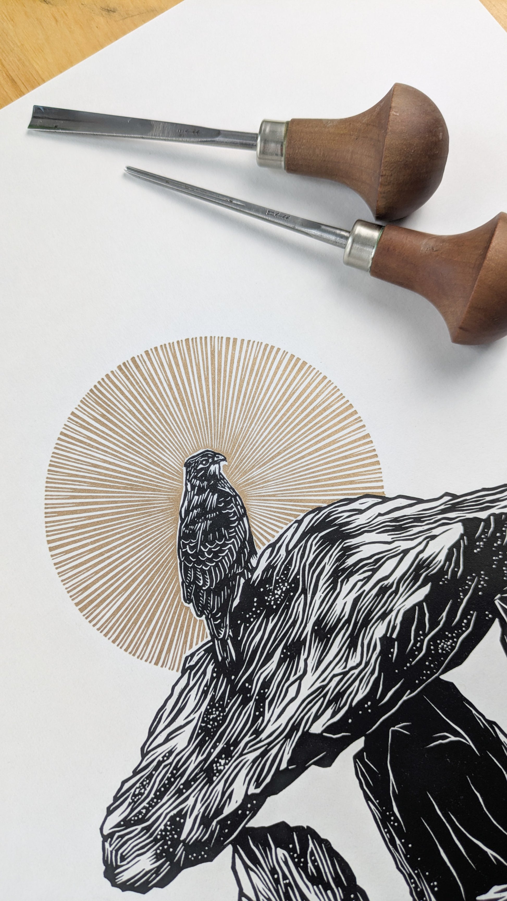 Due to the nature of the printing process there may be small variations from print to print. This is very much one reason why hand printed linocuts are special. Each is unique!