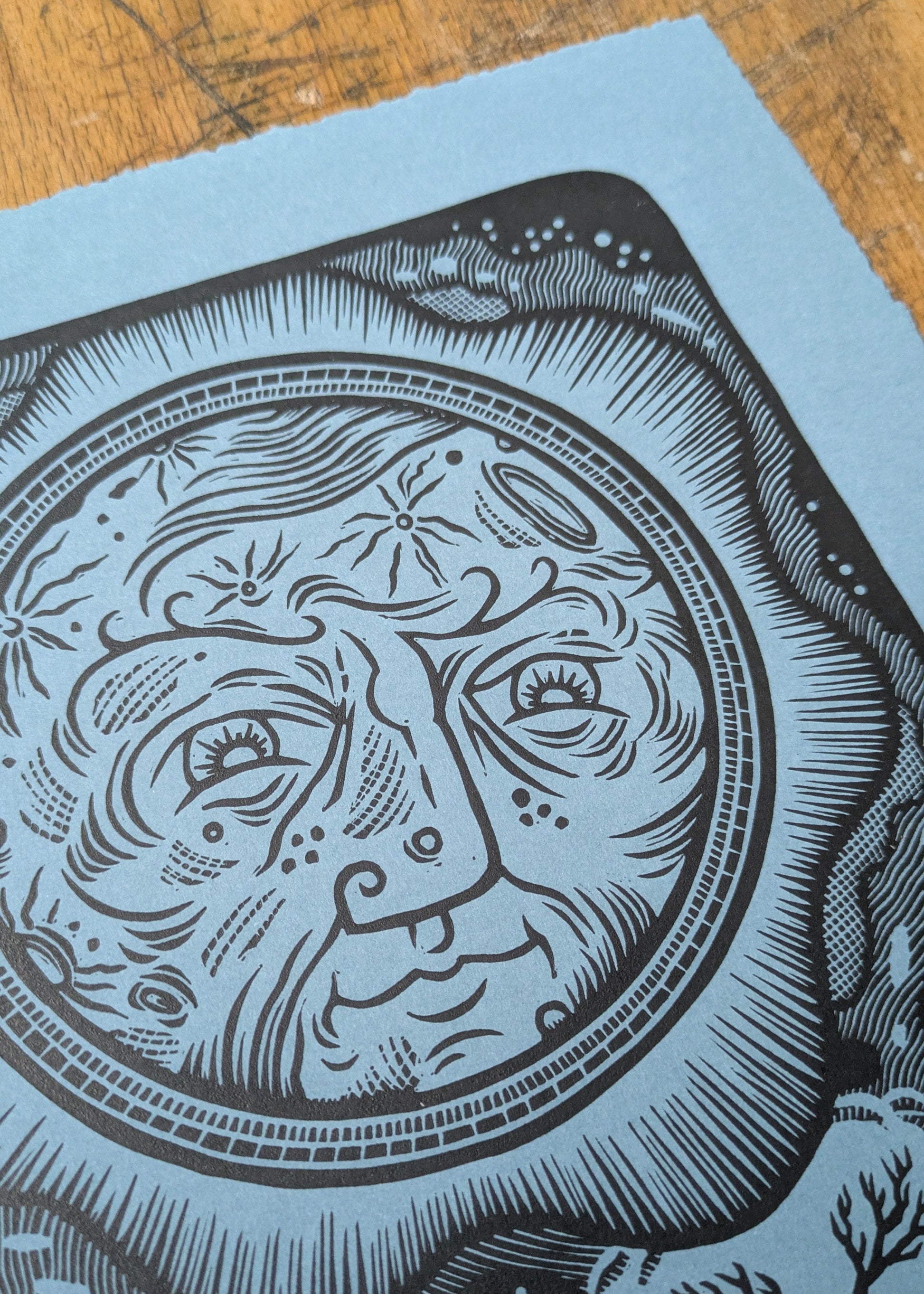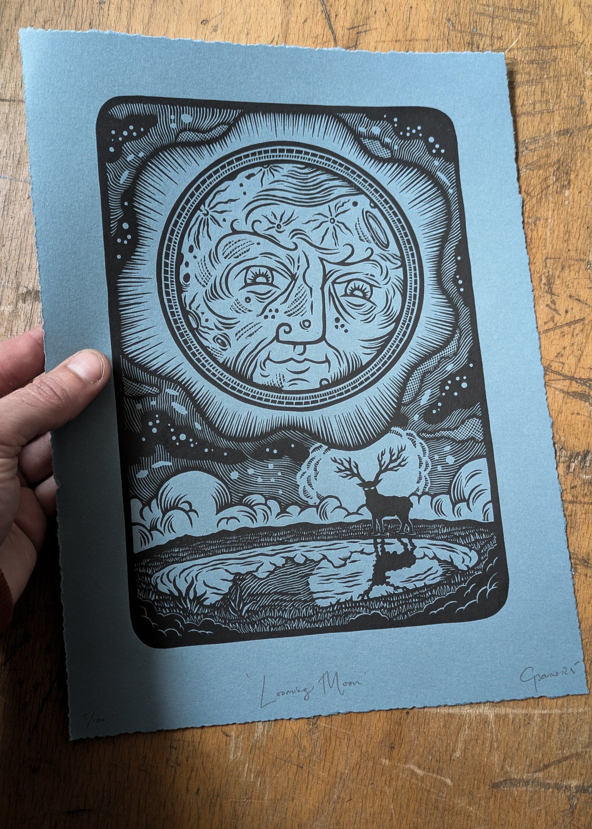 Due to the nature of the printing process there may be small variations from print to print. This is very much one reason why hand printed linocuts are special. Each is unique!