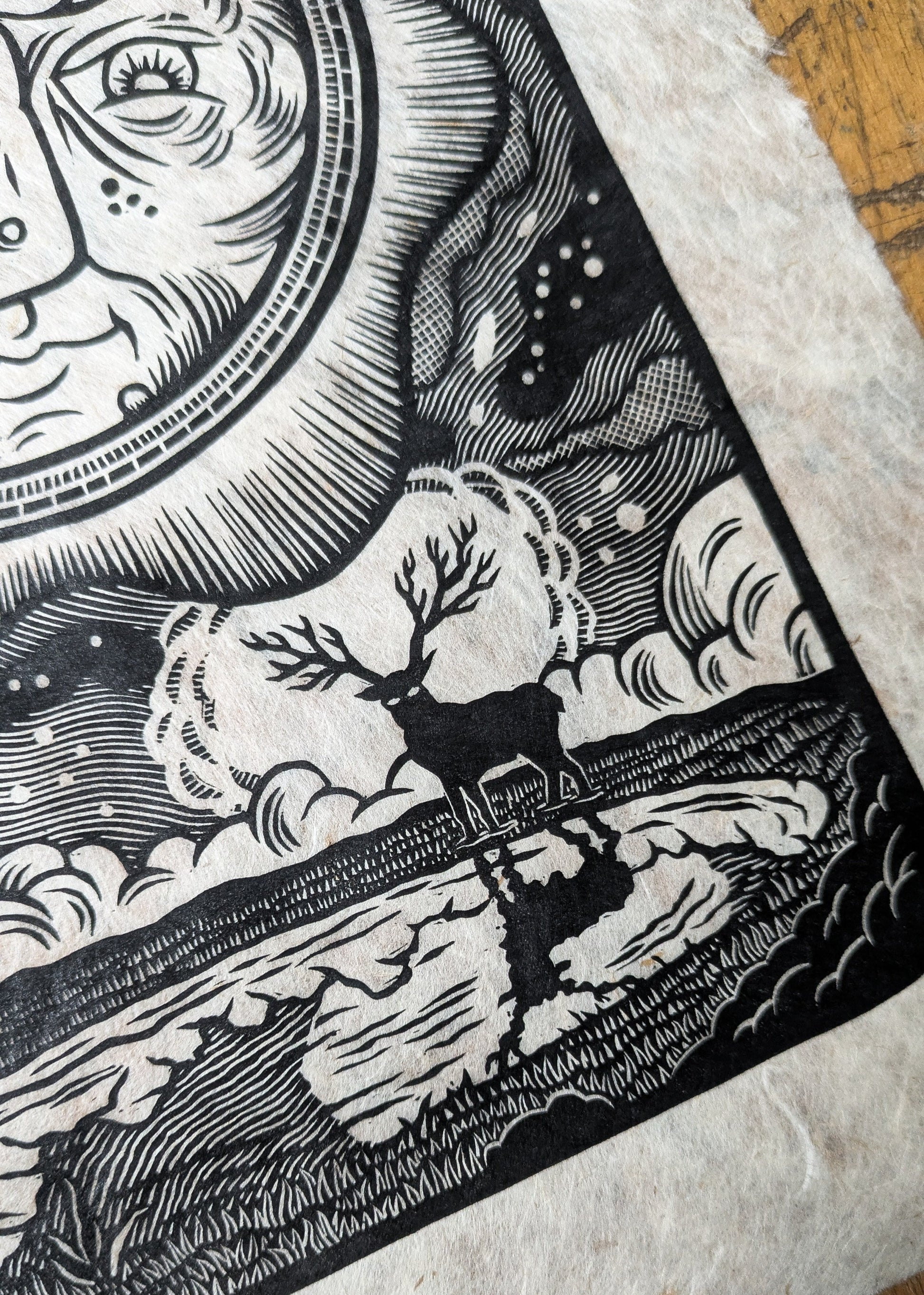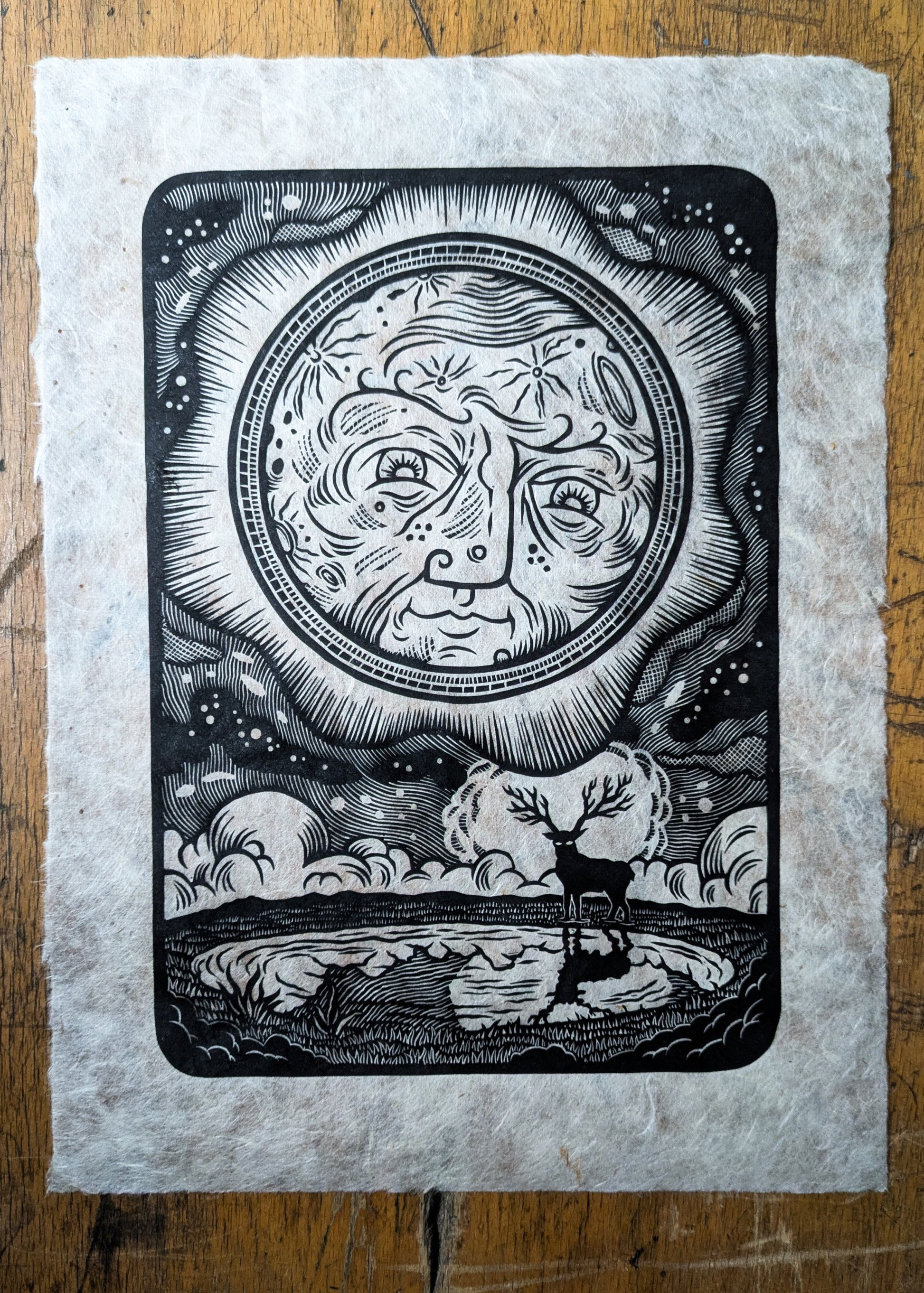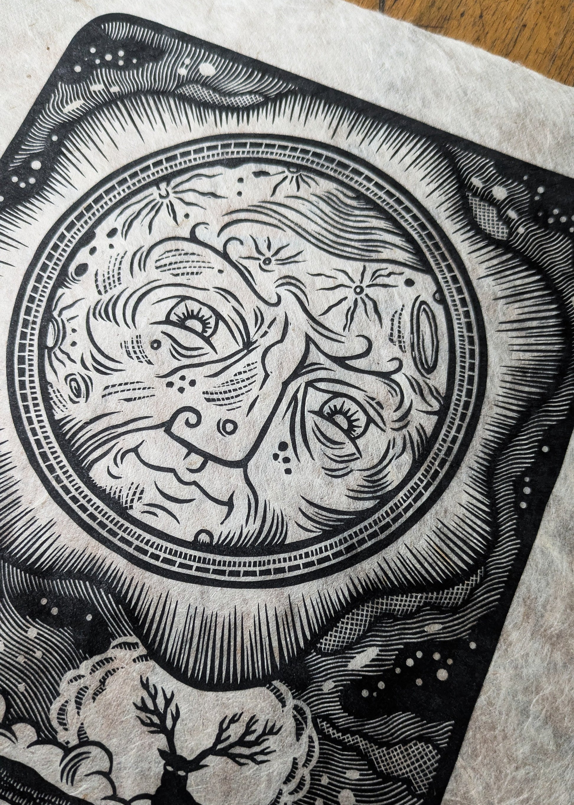 Due to the nature of the printing process there may be small variations from print to print. This is very much one reason why hand printed linocuts are special. Each is unique!