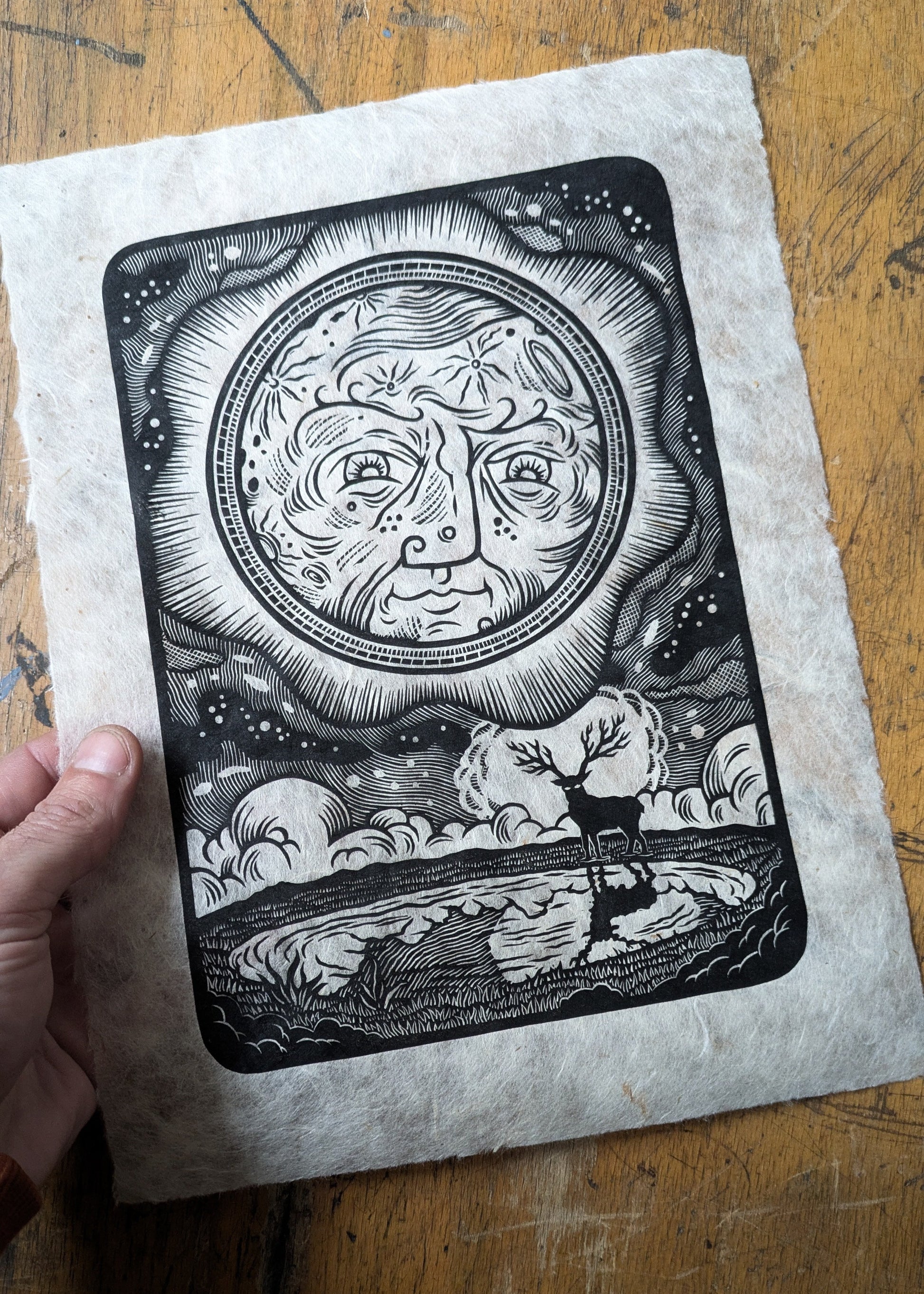 Hand pressed linocut.