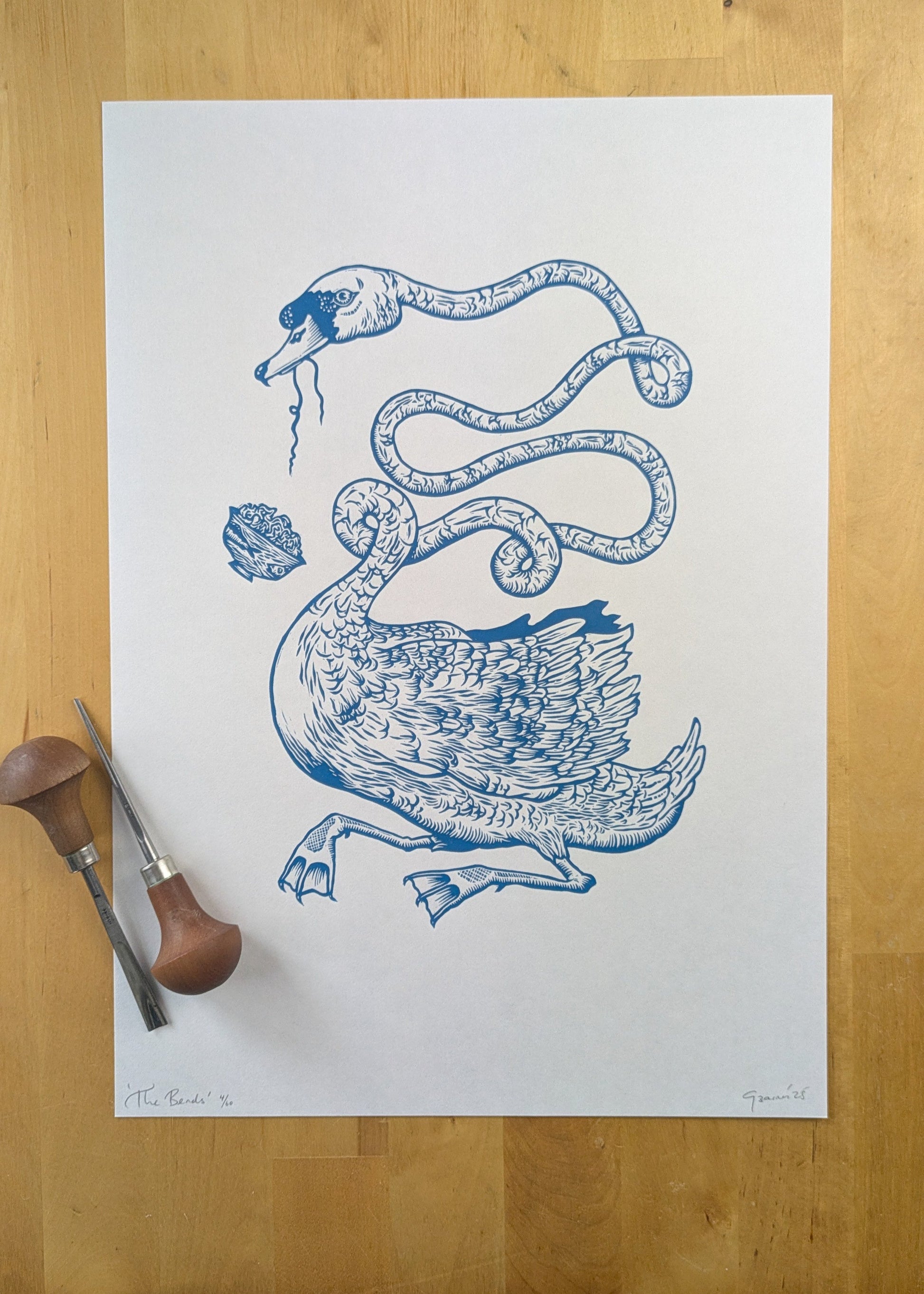 Packaging: Your print will be carefully rolled, wrapped in glassine paper and held together to avoid it unravelling. It will then be posted in a sturdy cardboard tube to protect it against any bumps along the way. Please consider reusing the tube to reduce waste. Cheers!