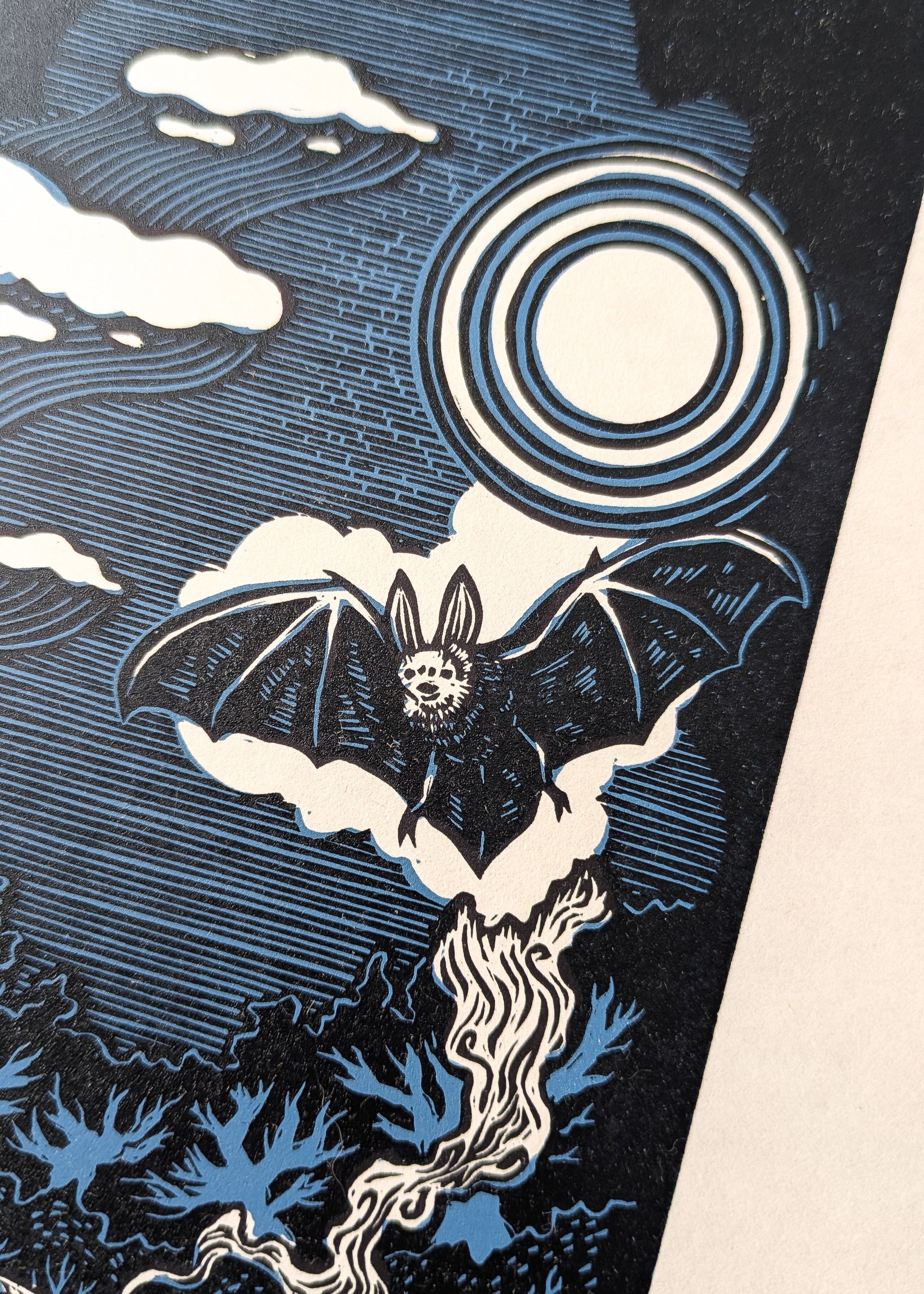 Due to the nature of the printing process there may be small variations from print to print. This is very much one reason why hand printed linocuts are special. Each is unique!